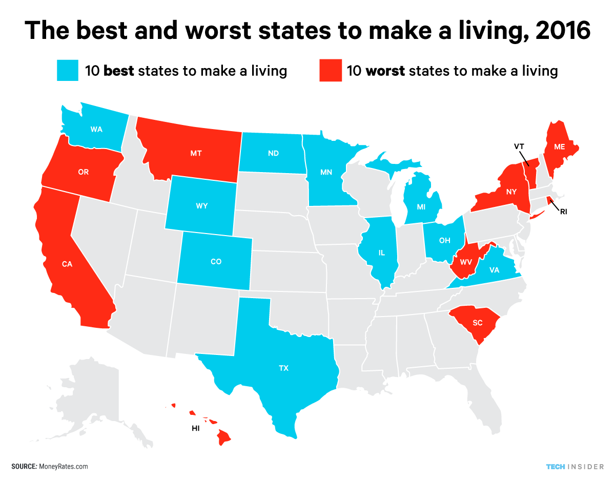 The 10 Best And Worst States To Make A Living Attn